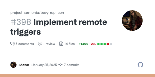 Shatur@lemmy.mlM · 5 months ago🧬 Bevy Replicon 0.34.0 is out!plus-squaregithub.comexternal-linkmessage-square0fedilinkarrow-up11arrow-down10