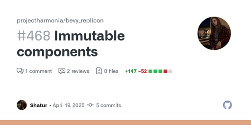 Shatur@lemmy.mlM · 6 months agoImmutable components support in bevy_repliconplus-squaregithub.comexternal-linkmessage-square0fedilinkarrow-up11arrow-down10