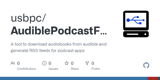 arrow-up126arrow-down1external-linkAudiblePodcastFeed - A tool to download audiobooks from audible and generate RSS feeds for podcast appsplus-squaregithub.comusbpc@programming.devEnglish · edit-23 hours agomessage-square0fedilink