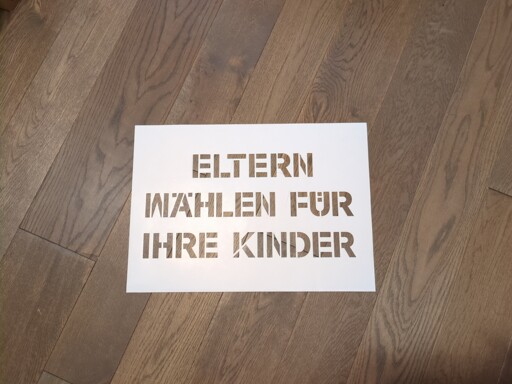 For the curious: It says “Parents vote for their children” and is an allusion to the omnipreset “Parents are liable for their children” signs on German construction sites.