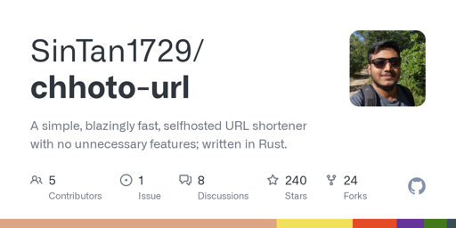 A simple selfhosted URL shortener with no unnecessary features. Simplicity and speed are the main foci of this project. The docker image is ~6 MB (compressed), and it uses <5 MB of RAM under regular use.