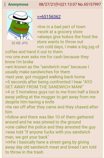 arrow-up11.08Karrow-down1imageAnon is the Sandwich Mansh.itjust.works🍹Early to RISA 🧉@sh.itjust.worksM to Greentext@sh.itjust.works · 4 months agomessage-square46fedilink