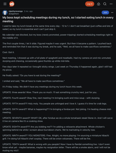 slaacaa@lemmy.world to Reddit@lemmy.world · 2 months agoI stumbled upon this gem of a post with 20 tHaNk yOu For tHe aWaRd type updates. Peak reddit cringelemmy.worldimagemessage-square28fedilinkarrow-up168arrow-down17file-text