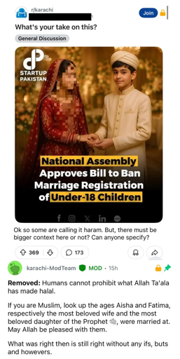 arrow-up1230arrow-down1imageReddit is now allowing advocacy of Child Marrige because they don't want to be seen as islamophobesthelemmy.clubBidah@thelemmy.club to Reddit@lemmy.world · edit-23 months agomessage-square162fedilink