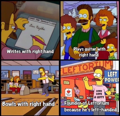 I play guitar right handed because I was taught by a right handed person and those were the only guitars he had. Right privilege is real.
