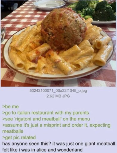 I ate dinner at a friend’s house way back when I was in middle school (not like overtly Italian, pretty WASP-y), and his parents made spaghetti and meatballs, and the meatballs were about this size. I remember the meal being pretty delicious though.