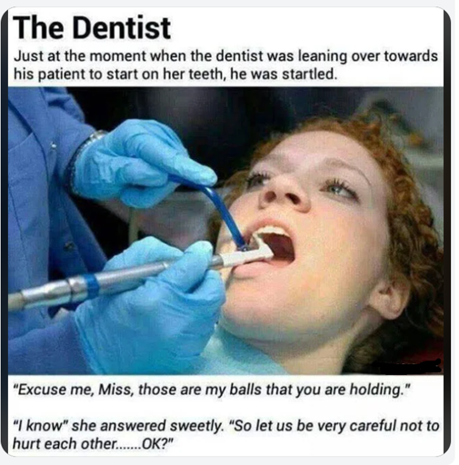 Who says he’s cleaning though? It just says he’s about to “start on her teeth”, this could be an operation or an investigation into a complaint or anything else that a dentist would do.