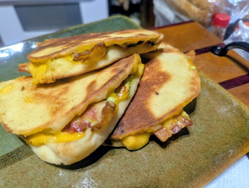 Mini naan smoked cheddar and bacon melts with homemade jalapeno cream sauce made with home canned jalapenos.