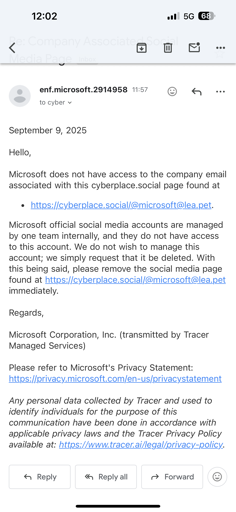 The admin of the Mastodon instance cyberspace.social just received an AI powered notice to delete the parody account @[email protected]