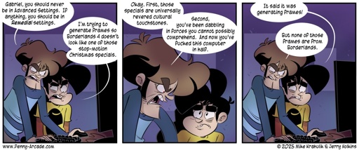 As for “their art got really dark”. No … the scene is just dark… there is glow coming from the monitor… If you mean tonally dark I disagree because penny arcade has had tonally dark elements since the rain slick precipice of darkness (and probably even before that, idk I’ve not read their entire lexicon)