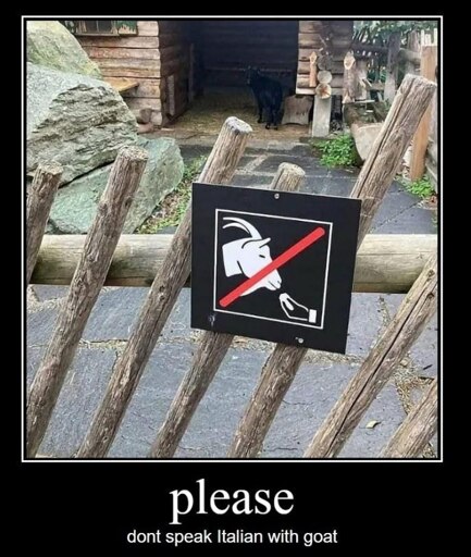 cm0002@lemmy.world to memes@lemmy.world · 1 month agoPlease don't speak Italian with goatlemmy.mlimagemessage-square4fedilinkarrow-up1246arrow-down19cross-posted to: [email protected]