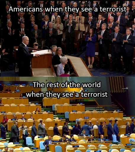 minus-squareunexposedhazard@discuss.tchncs.delinkfedilinkarrow-up61·29 days agoFor others wondering this happened today: https://www.independent.co.uk/news/world/middle-east/netanyahu-un-speech-israel-gaza-b2834372.html This dude is such a clown. THE CURSE -> Shows a bunch of countries that his country has been committing warcrimes against for decades.