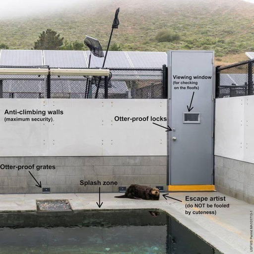 Our specialized otter tote, which is a dedicated area used to provide more intensive care for sick and injured sea otters. With a pool and dry haul-out area, our animal care experts can adjust the water temperature, water level and air temperature of the otter tote based on where an individual patient is in its recovery. This innovative rehabilitation tool helps reduce the risk of sea otter patients developing hypothermia and provides a safe space for them to groom and heal while their coat is compromised.