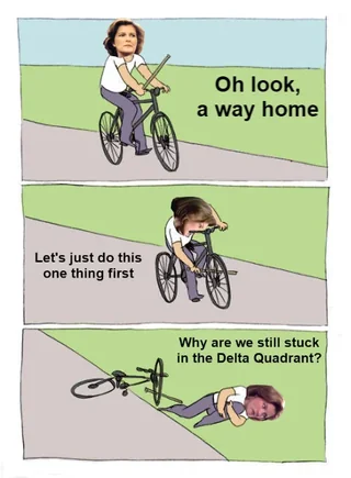 She coulda used time travel to make it so they never got pulled into the delta quadrant to begin with.