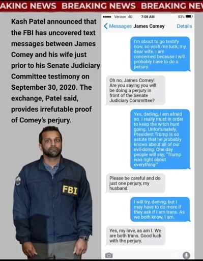 I don’t want to burst anyone’s bubble about the otherwise obvious validity of these messages, but it’s curious that James Comey has his wife in his contacts as James Comey. Everything else looks totally authentic though, and James Comey is clearly in some hot water.