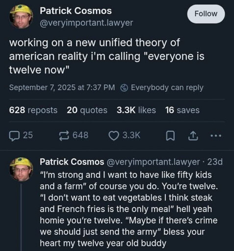 arrow-up11.55Karrow-down1imageUnified Theory of American Realitylemmy.worldUnderpantsWeevil@lemmy.world to Lemmy Shitpost@lemmy.worldEnglish · 3 days agomessage-square121fedilink