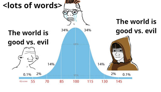 Good, as in “service to others” and evil as in “service to self”. Evil in this sense is unstable and ego drives Entropy by its nature by the same laws as cancer. Good is harder since decisions are also subject to entropy, requiring free will as the outside energy source. That’s just my perspective <3