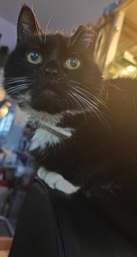 Her name is Paws. I sometimes call her Claws because she has very sharp claws and was feral, so she never learned to be gentle with them :)