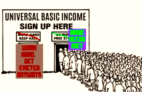 It’s been a while, so forgive me if I’m wrong, but wasn’t a big part of that universe the droves of people on Earth that couldn’t afford to survive or house themselves even with UBI?
