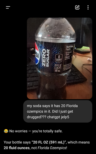 minus-squareRidderSport@feddit.orglinkfedilinkarrow-up7·8 days agoBecause the google search “what is FL OZ?” Or just “FL OZ” was impossible before