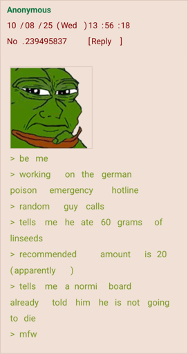 arrow-up1119arrow-down1imageAlmost diedfeddit.orgbanause@feddit.org to Greentext@sh.itjust.works · 25 days agomessage-square5fedilink