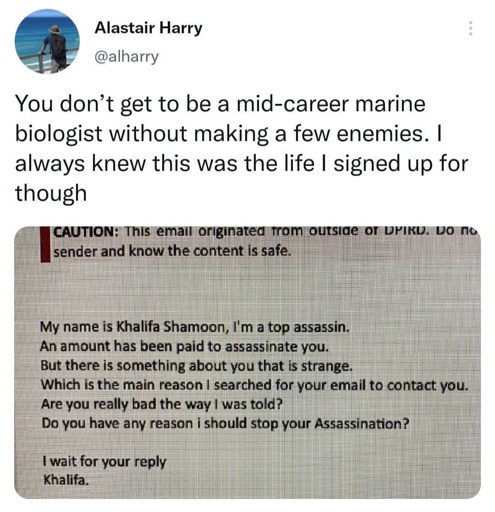 Every top assassin knows to start your emails by explaining you are in fact a top assassin.