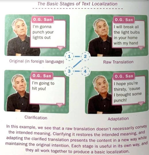Transliteration is another thing entirely: it’s translating the sounds. “I’ll beat you so that the lights in your eyes go out” translated to Japanese is “君の目の光が消えるまで殴ってやる”. Transliterated back, it’s “Kimi no me no hikari ga kieru made nagutte yaru”.
