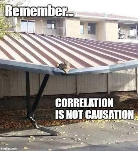 I would argue, that the reason why the cat choose this spot is partially because it is the deepest spot, eliminating the uncomfortable slope it would have if it sat 1 meter to the right. Thus there is a causation, the roof shape causes the cat to sit at this spot.