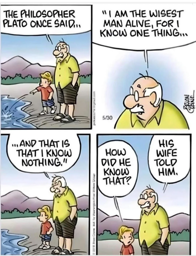 Isn’t this a wife good because she’s helping him? Oh it’s a joke about how the wife tells him everything he knows is wrong. I thought the wife was helping him with philosophy