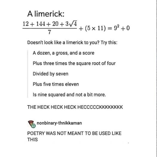 fossilesque@mander.xyzM to Science Memes@mander.xyzEnglish · 5 days agoA Limerickmander.xyzimagemessage-square8fedilinkarrow-up1276arrow-down16