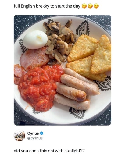 minus-squareMr_Dr_Oink@lemmy.worldlinkfedilinkarrow-up5·1 day agoAnd you are very welcome to enjoy your specific version of a full english. 😀