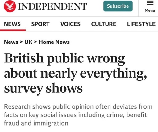 The general public believe whatever racist shit the newspapers print about how we’re all poor because of some war-fleeing immigrant (who has No Recourse to Public Funds because of course boats are only legal ways to cross the channel if rich people own them), instead of the money grabbing corporations who give all the public subsidies to the shareholders before doubling our bills, or who treble their profits in three years blaming the war in Ukraine for their CEO’s need for a twelfth superyacht and a new helicopter.