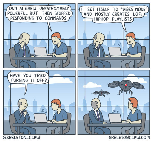 This reminds me of one of the stories of potentially misaligned AI. Don’t remember the exact example, but I think it’s something like, they made an AI whose only purpose was to create spoons, its only purpose was to make spoons. So, the AI decided that the best way to achieve that was to turn the whole world into a factory for spoon creation, create nano-bots that would go to other planets, mine resources to create spoons there, and kill anyone that would try to stop it, because it doesn’t know right or wrong, it only knows it must make spoon.