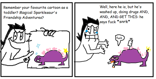Eventually, most of that demographic comes to realize that the transgressiveness itself is only so interesting and there is usually something of value in the interesting property that distance lets them appreciate, so a spoof needs to have other things going for it to hold an audience’s interest (e.g. Who Framed Roger Rabbit, which is still brilliant). That said, there is a certain durability to the low-hanging fruit when the subjects of the satire remain popular to continually cycling cohorts of kids who have the unmitigated gall to begin growing up. :-)