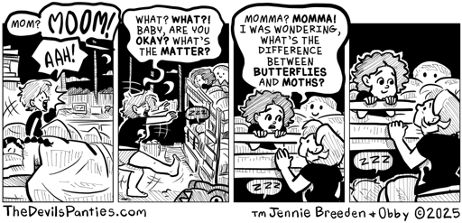 I find it funny that she drew it where the husband does not wake up and even the other kid does not.