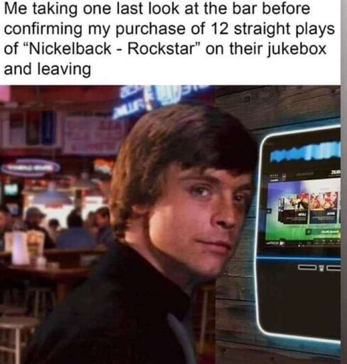 So he queues it up about 10 times in a row, she can’t skip them all fast enough, it finally starts playing, she’s getting mad at us,some asshole dudebros in the bar are getting annoyed that this song is now playing twice, and we’re all politely yet firmly asked to leave.