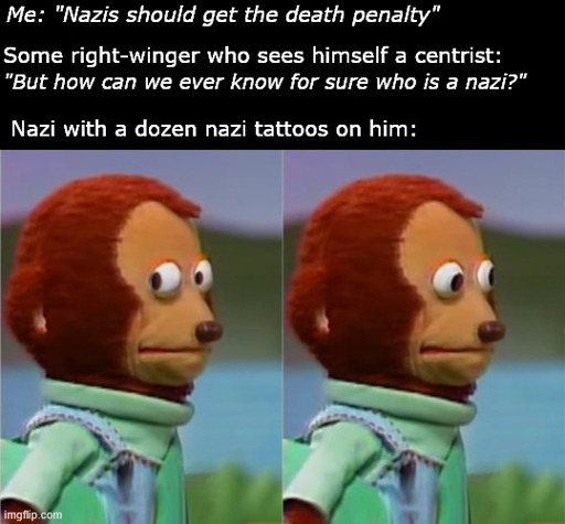 minus-squareSentient Loom@sh.itjust.workslinkfedilinkEnglisharrow-up20arrow-down16·4 days agoYou’re just horny to kill people. Kinda like a… fucking Nazi.