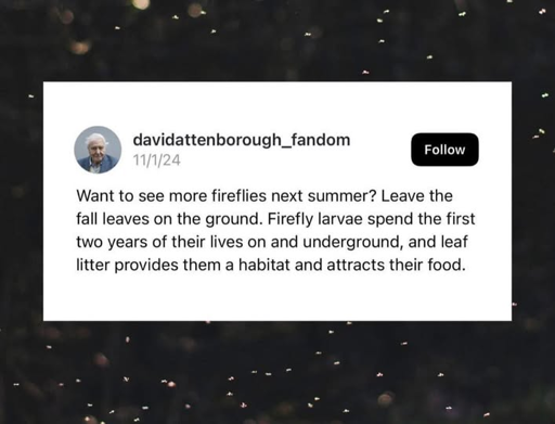 Today I’m on 3.5 acres, half of which I don’t mow at all and the other half I don’t rake the leaves. But there are still fewer fireflies than 40 years ago.