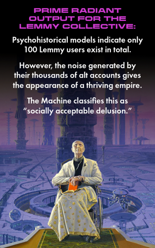 MeatPilot@sh.itjust.works to Lemmy Shitpost@lemmy.world · 1 day agoSunday update from the Prime Radiantsh.itjust.worksimagemessage-square61fedilinkarrow-up1352arrow-down110file-text