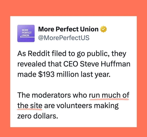 Well, you get the shares “cheap” because it’s not profitable and hope that they turn profitable, e.g. by selling user data, or paywalling everything like Twitter. The mods make $0. For them, it’s probably more like: Why are the mods only paying us $0? How can we maximize that?