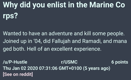 Mostly because as you can see in the post, he didn’t accidentally get ordered to kill people but joined the military with full intention to do so. And is very proud of doing it after the fact.
